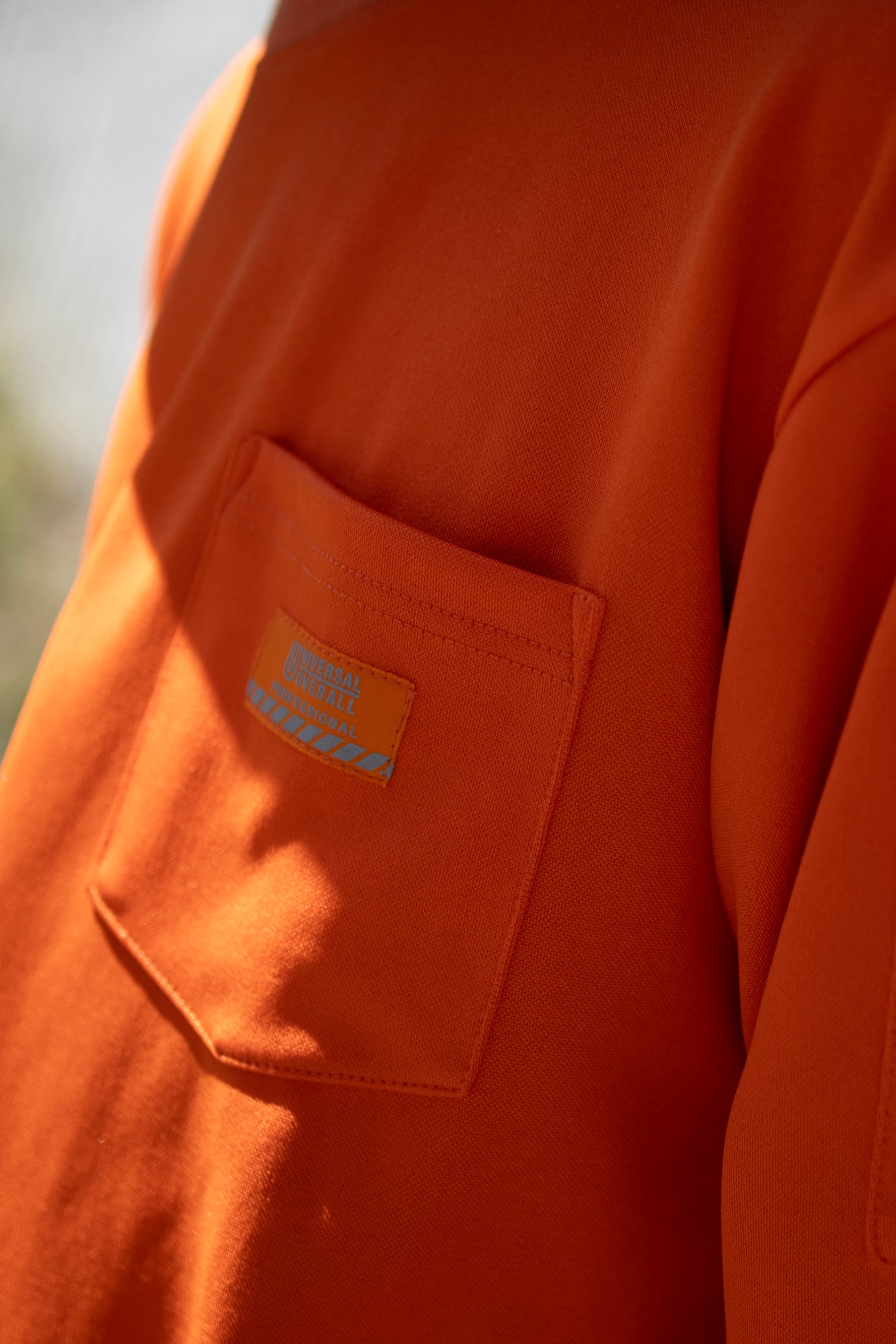 左腕部分には便利なペン差しを搭載し、作業時の実用性も確保。背中の腰部分にはリフレクターテープを配置し、安全性とスタイルを両立しています。