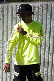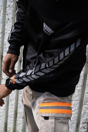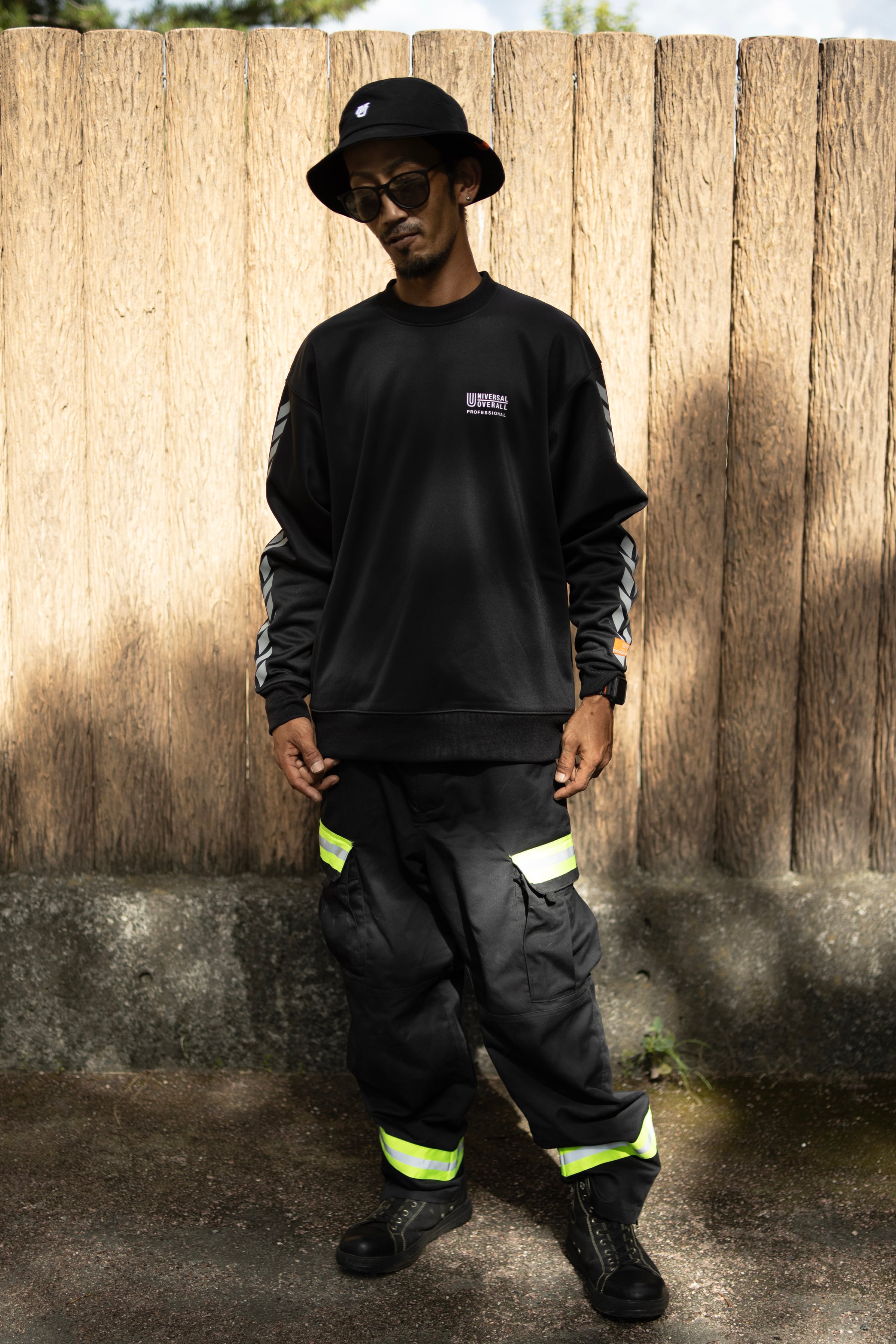 最大のポイントは、腕部分にあしらわれたバリケード柄のリフレクタープリント。