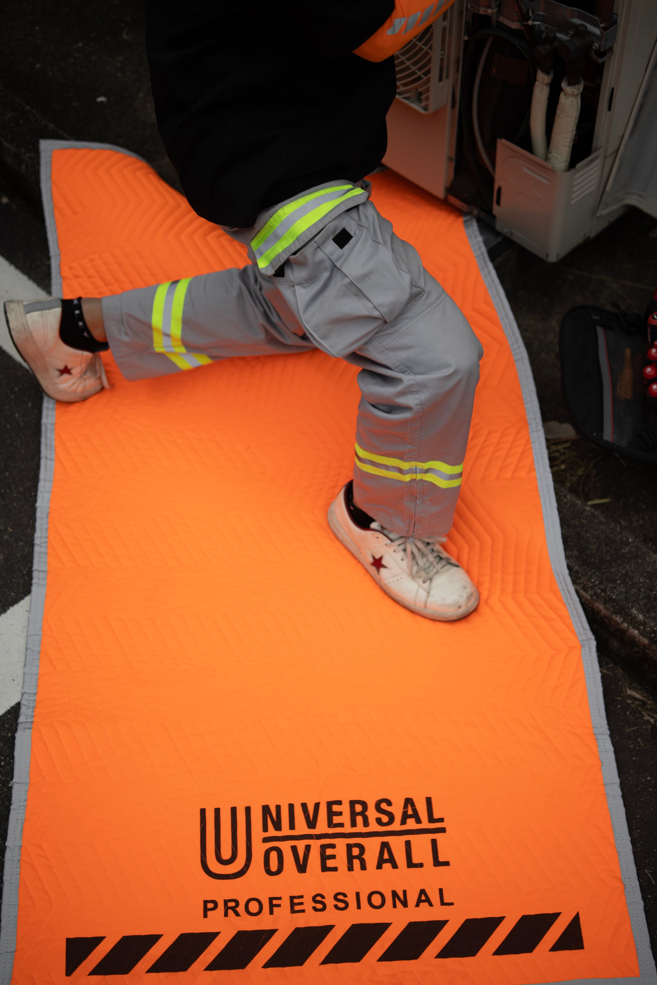 さらに、マットの縁にはリフレクターテープを施し、暗所や夕方の作業でも輪郭がはっきり見える設計です。